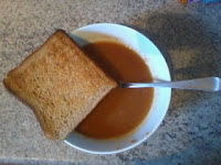 SNACKS: Curried carrot soup with toast 23p, then a slice of toast and jam 3p