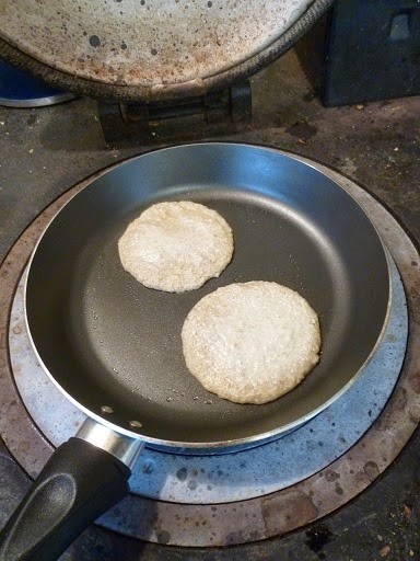 | Oat pancakes. In a frying pan. |
