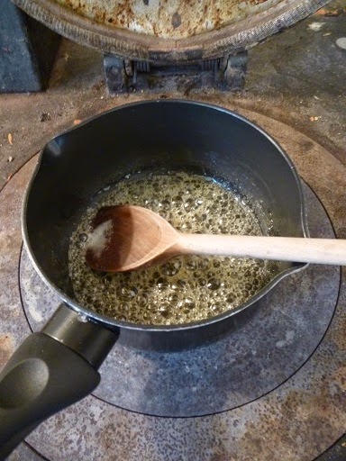 Meanwhile I tried to make some kind of syrup by heating up half the juice from the tin of pineapple, so it would reduce and become sticky.