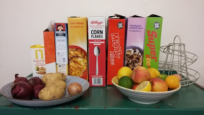 | Top of the green cupboard afterwards – less cereal, no onions, still some potatoes and fruit |