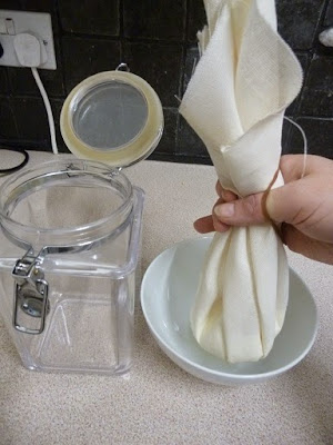 the yogurt onto the muslin without the material slipping and yogurt spilling