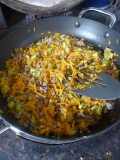 Poke it and stir it round with a fish slice so the mince breaks up in the pan while cooking.
