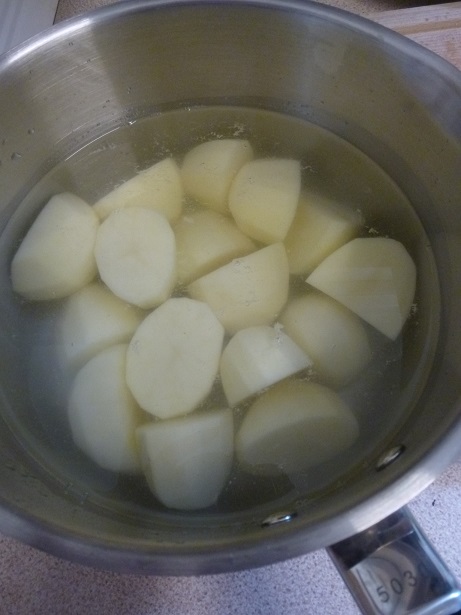 3. Meanwhile put the potatoes in a saucepan and cover with cold water.