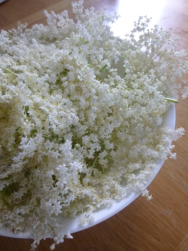 But when the elder started flowering outside the kitchen, I could definitely recognise it as a source of elderflower cordial, and decided to try making some.
