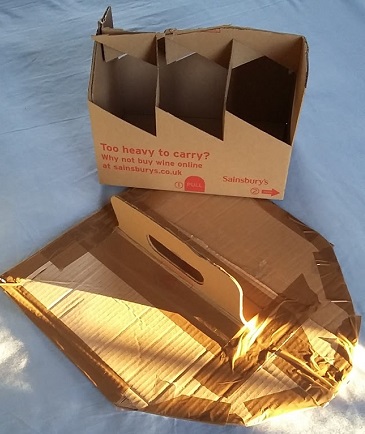 My top tip for future shield making was hacking apart a cardboard wine carrier to make a handle. Worked a treat. You can thank me later.
