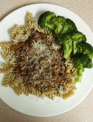 Dinner: Bolognaise sauce with wholewheat pasta and broccoli