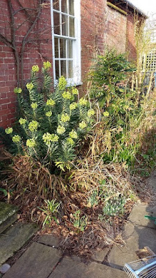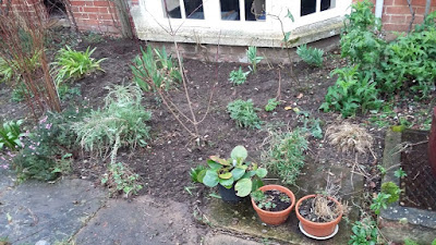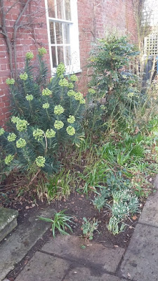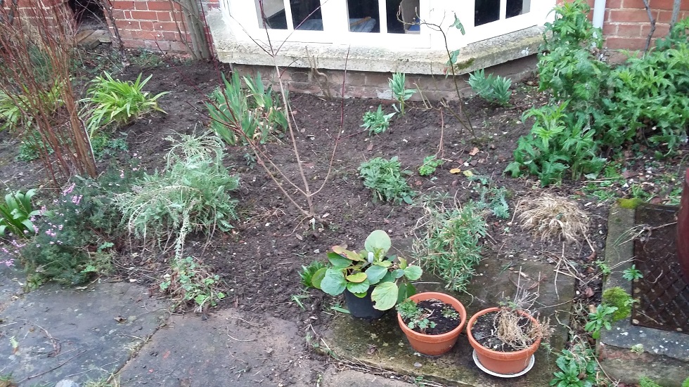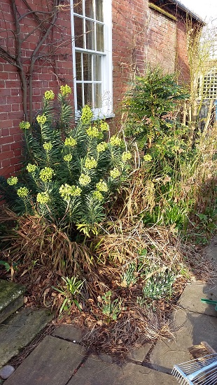 After the hacking back, pruning, deadheading and digging out, the flower bed did look a bit better. Even turns out there were quite a few primroses and snowdrops underneath everything else!