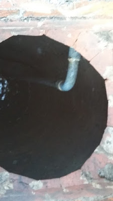 The pots at the front are perched on top of a large slab of York stone. Underneath is the original Georgian well, with brickwork spiralling down to the water level. I’ve only seen it once (that slab is hefty) and took a couple of pretty rubbish photos, but this might give you some idea.