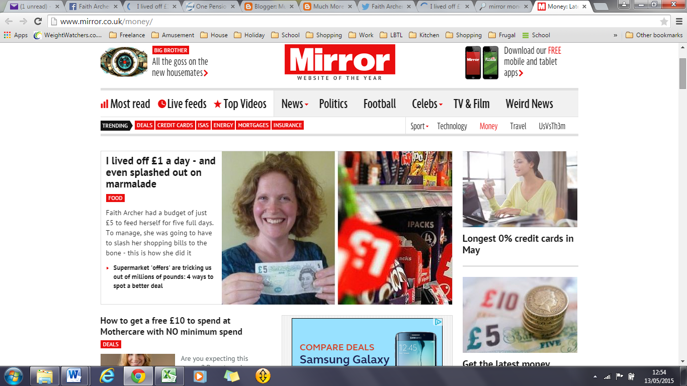 In addition to the article I did for the Sunday Times on 10 May about my experiences on Live Below the Line, I was also asked to write about shopping on a tiny budget for the Money section of Mirror Online.