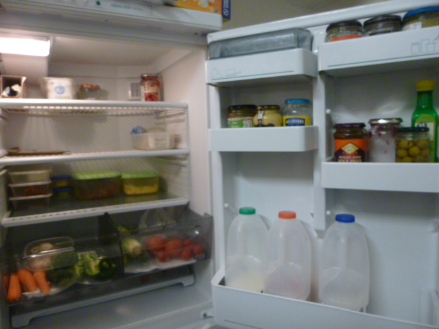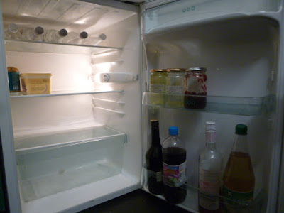 Our small fridge acts an overflow for extra veg, leftovers and drinks, and it's only really as empty as these photographs just before I go shopping again. Hadn't thought of switching it off some of the time. Will check!