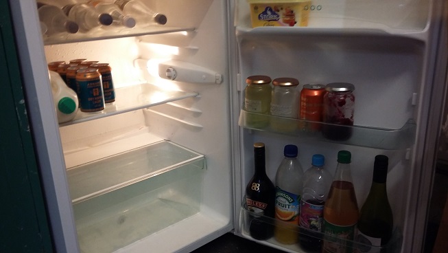 | Small fridge afterwards – even fewer bottles and cans |