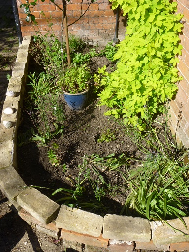 With more hope than experience I’ve planted some herbs in a little bed at the corner of the house.