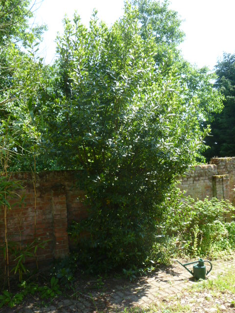| Bay tree flourishing just like the wicked. Watering can added for scale. |