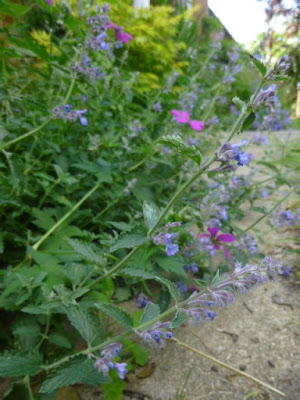 There is also a blue-flowered plant that I assume is another version of mint, and has taken up unlikely residence in the front flower beds.
