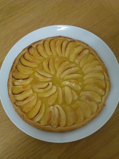 After the tart is cooked (about 15 mins in a hot oven), you melt 3 tablespoons of apricot jam with 2 tablespoons of lemon juice, brush the mixture over the top of the tart and leave it to cool. That’s it. Really easy, looks nice, tastes great. We ate it with vanilla ice cream and chocolate salted caramel ice cream through sheer greed, but it’s great with normal cream or creme fraiche or toffee sauce too.