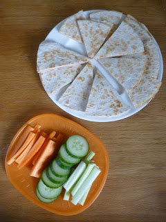 Children’s Dinner: Cheesy triangles and cheese and ham triangles, with carrot, celery and cucumber