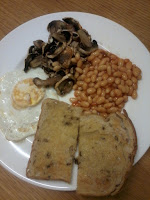 Dinner: Fried egg with mushrooms, baked beans and toast