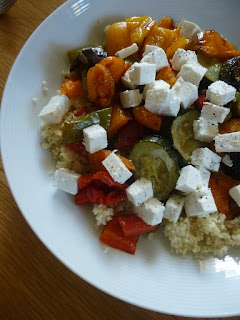 Lunch: Feta, beetroot and artichoke hearts with cous cous