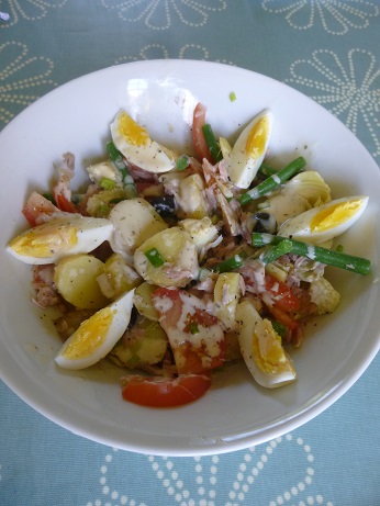 Lunch: Tuna nicoise salad with egg, artichoke hearts, potatoes and green beans